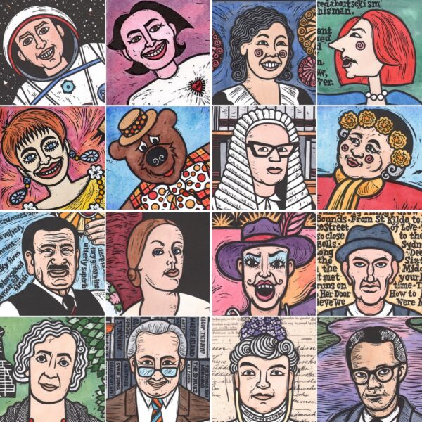 The image features some of the many faces from my ongoing series Local Icons. Many of them feature in my book of the same name published by Wakefield Press. I’ll be working on more over the next few months for an upcoming exhibition, but I also have a few other exciting projects underway. Check back now and then (I’m a bit erratic with updating this site, but I’m resolved to try to be better …) or follow me on Instagram or Facebook for updates and upcoming events.